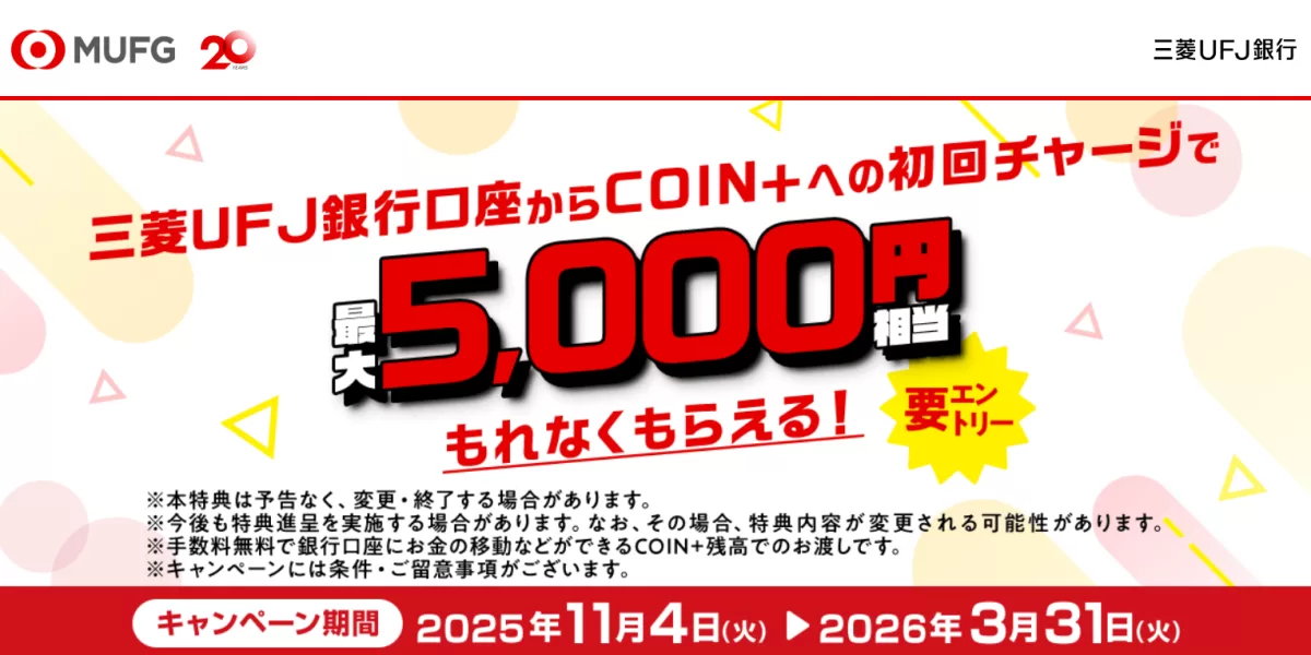 三菱UFJ銀行から初回入金(3万円以上)をするだけで5000円が貰えてしまいます…✨
