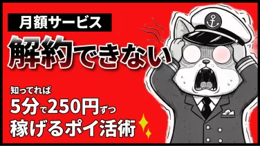 こんにちは。ゼニっち船長です。今回は、知っていれば爆益が取れる月額サービス系ポイ活についての解説記事になります。お得ですが、解約の仕方が少々厄介で、解約を忘れると月額料金がかかり続けてしまう…なんてことも。解約手順だけ見たい方はこちら月額サ...