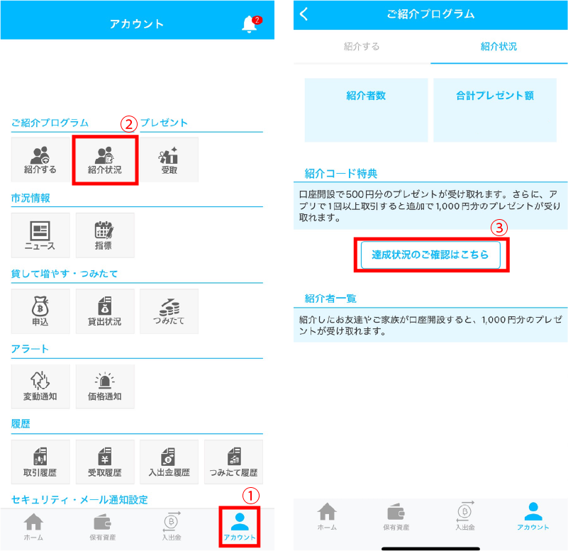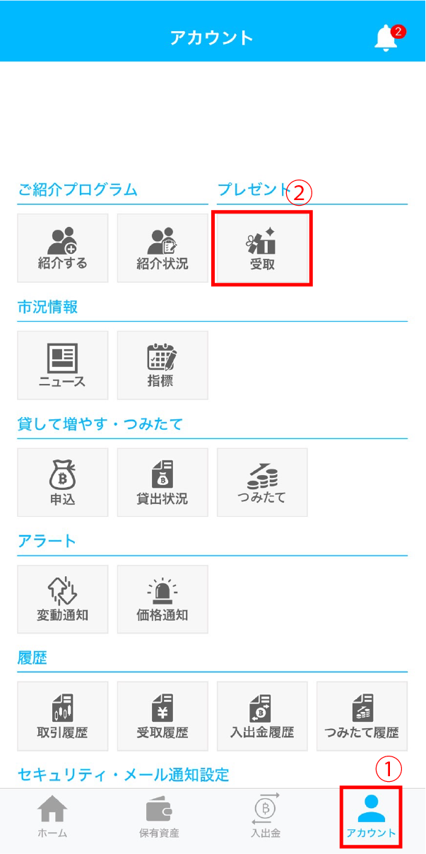 | 付与条件② | 5万円分の暗号資産購入で2500円 |