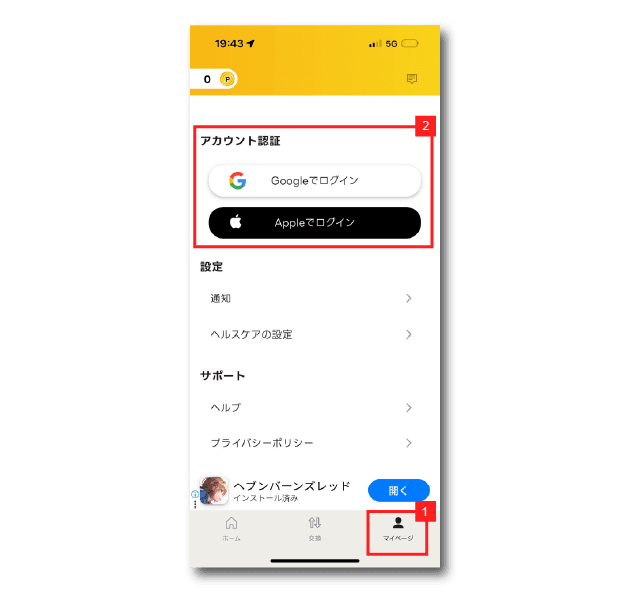 マイページ → Googleでログイン or Appleでログイン