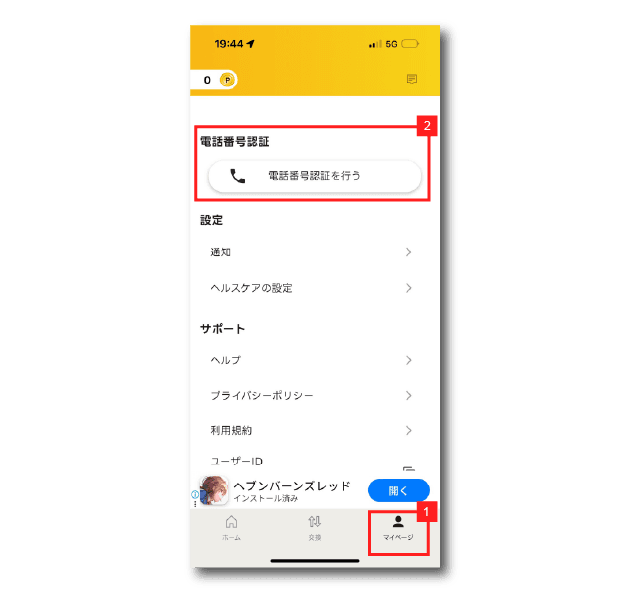 マイページ → 電話番号認証を行う