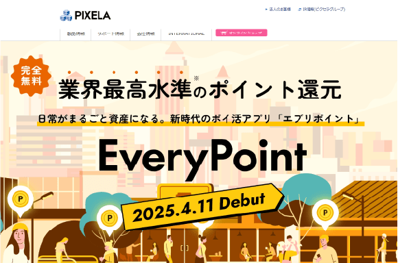 EveryPoint(エブリィポイント)は株式会社ピクセラが運営しています。もともとPC関連商品の製造販売を行っていた企業で、会社規模もそれなりに大きく、当サイトでは安全なアプリと判断しています。