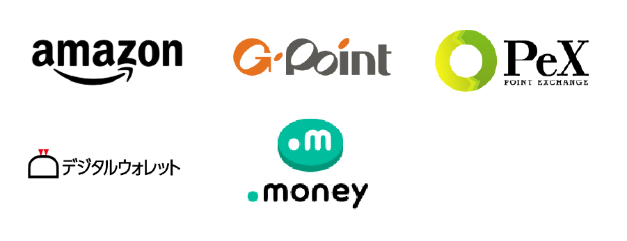執筆時点で交換できるのは以下の5つでした。ほとんどの大手交換先を網羅しているので交換先で困ることはなさそうです。