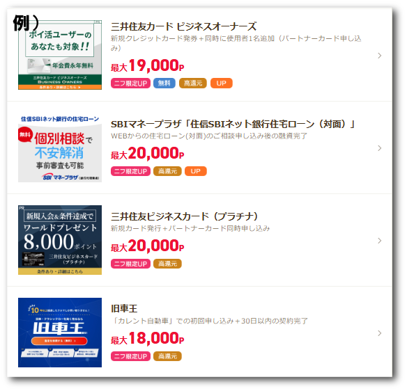 サービスを利用したり、契約することでポイントがもらえます。他ポイントサイトと比較しても単価が高いのでオススメです。