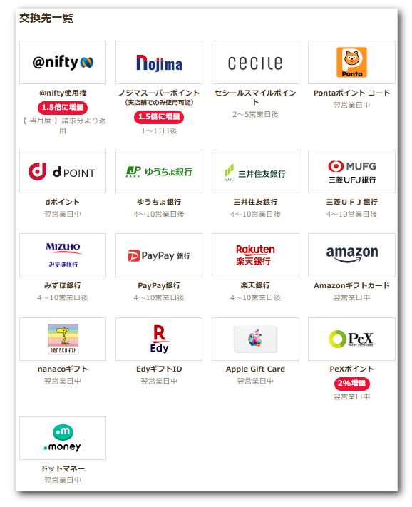 ポイントの交換先は?