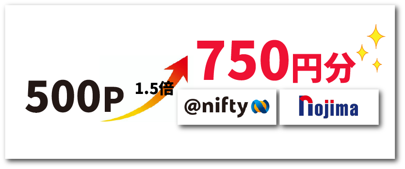 ノジマポイントと@nifty使用権への交換は1.5倍に