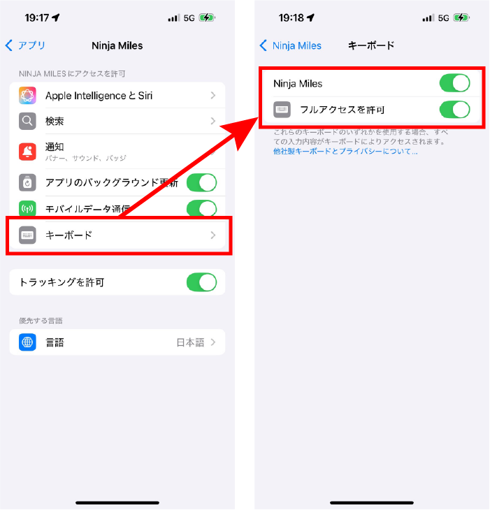 ニンジャマイルズの使用には、キーボードのフルアクセスが必要です。