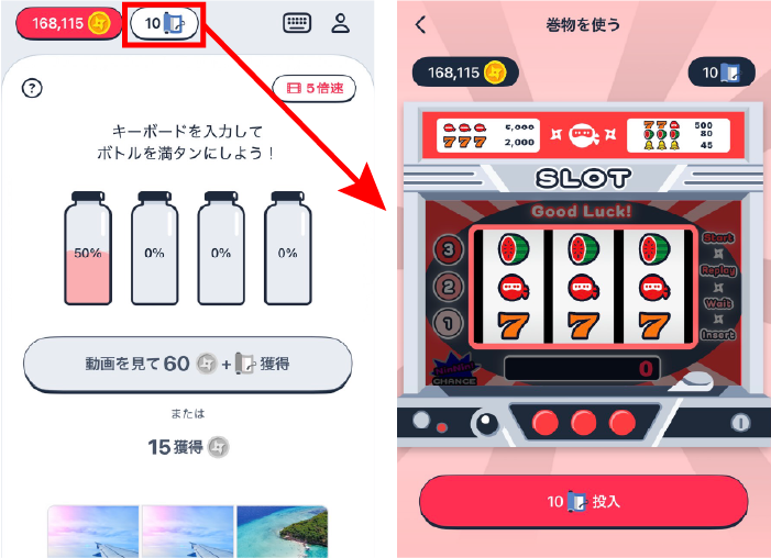 ニンジャマイルズでは、広告視聴やデイリーミッションで巻物を手に入れることができます。巻物10個毎にチャレンジすることができ最大5000マイル貰えるのでこまめに確認しましょう。