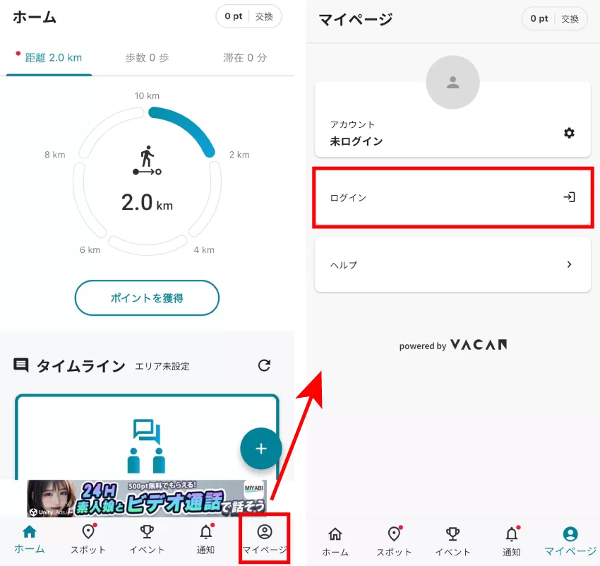 マイページ > ログイン をタップ