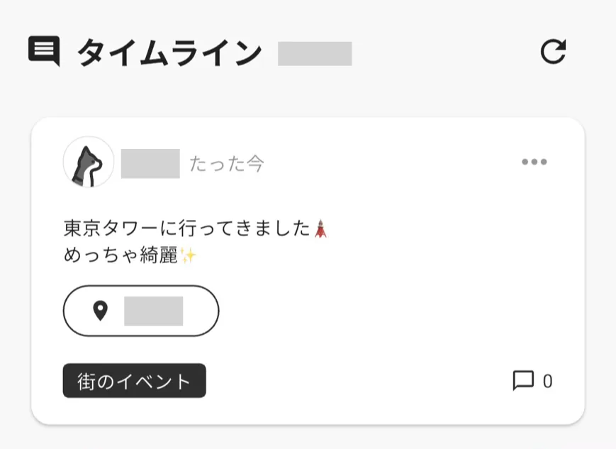これもnoma(ノマ)特有の機能で筆者がすごい気に入っている機能です。自分の住んでいる地域に関しての投稿を行うことができ、おそらく近場の人のタイムラインに表示されています。
