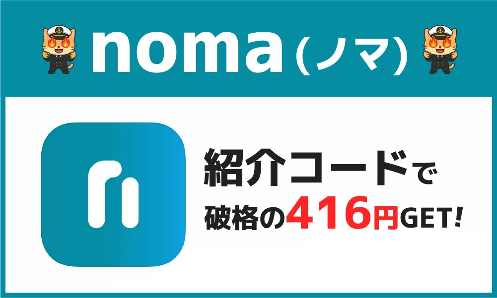 noma(ノマ)にはお友達紹介キャンペーンがあります。条件付きですが、最大416円分のポイントを招待経由のみで獲得できてしまうので、使わないと絶対に損です。招待コードの入力手順はこちら