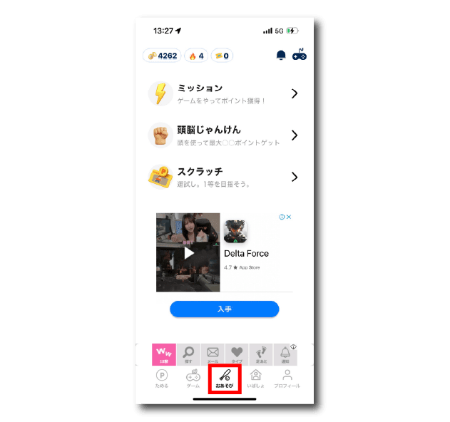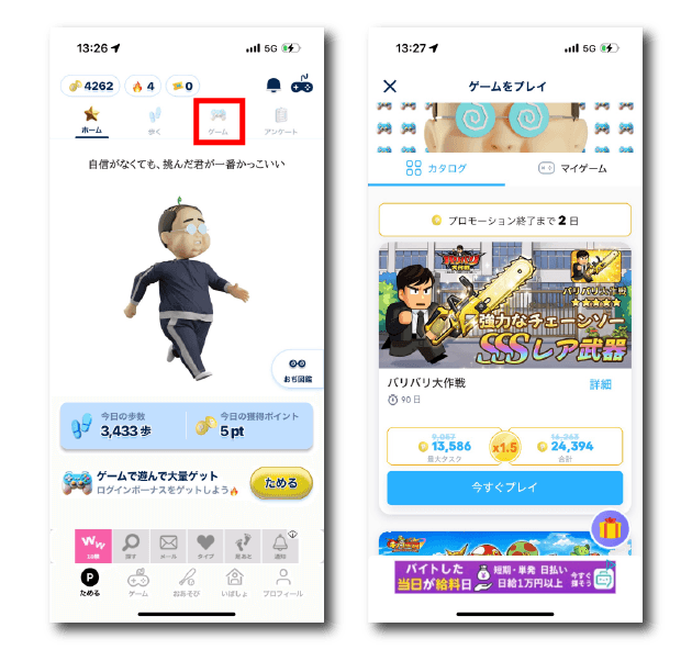 リストの中から好きなゲームをプレイすることで内容に応じたポイントが貰えます。