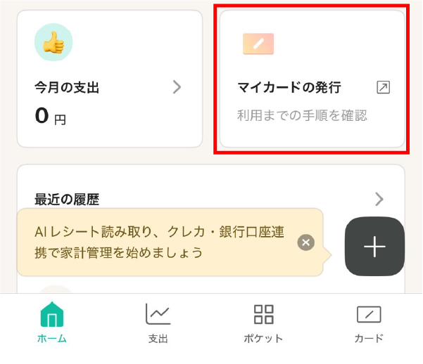 ホーム→マイカードの発行