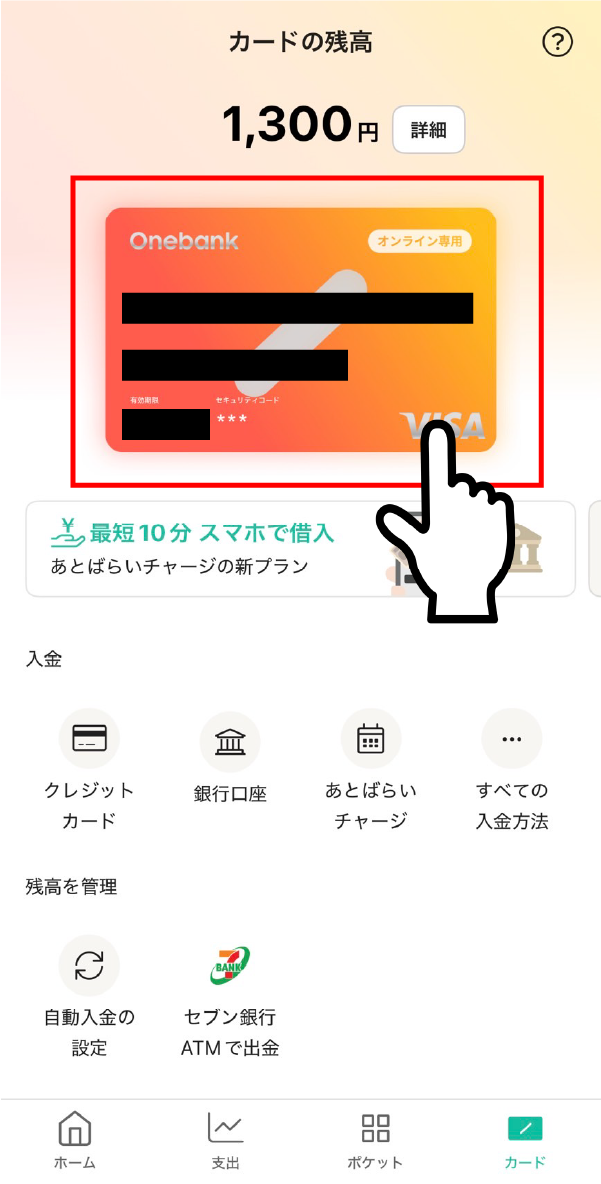 さっき作ったカードに1000円を入れていきましょう。あと少しです!