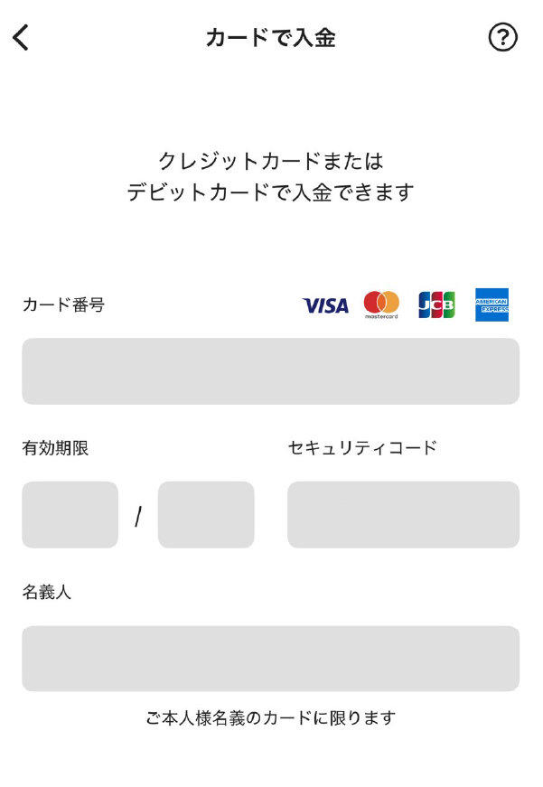 以後、入金の際はこのクレジットカードから支払われることになります。