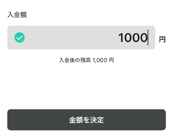 カード情報が入力出来たら、金額を指定して入金を行いましょう。