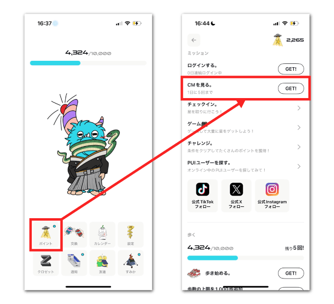 歩くことやミッションをクリアすることでポイントを貯めることができ、日々の生活(習慣)に価値がつくポイ活アプリとして注目されています。