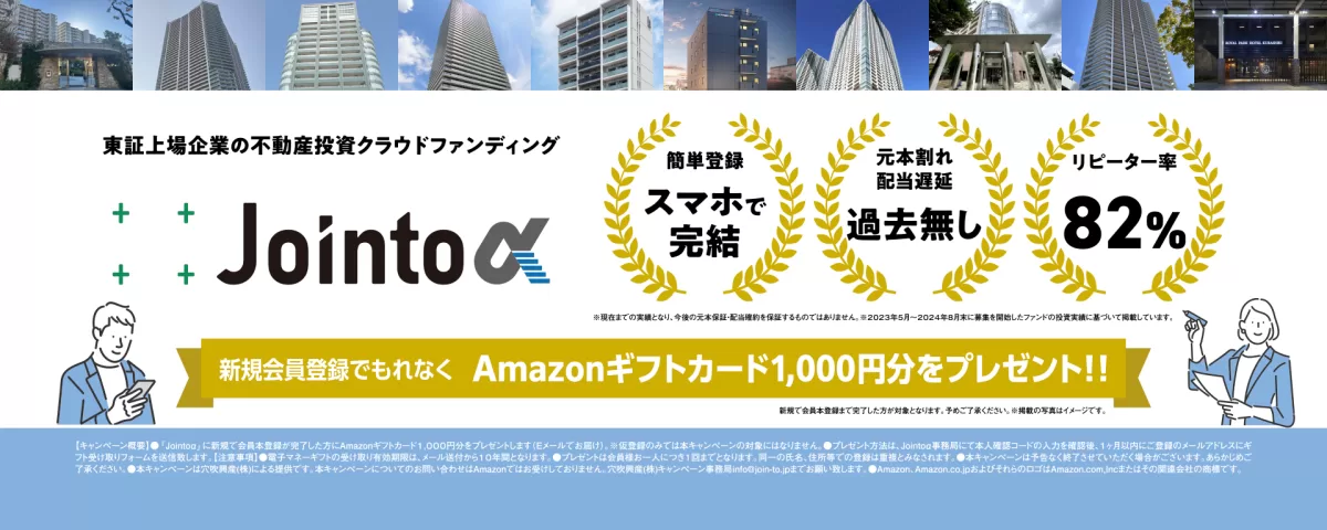 投資家登録だけでAmazonギフトカード1000円分が貰えるのでかなりお得。