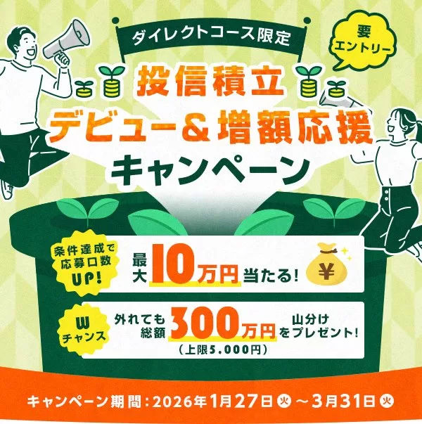 1月時点と比較して1万円以上積立金額が増額してればOKで、抽選に外れても300万円山分け。