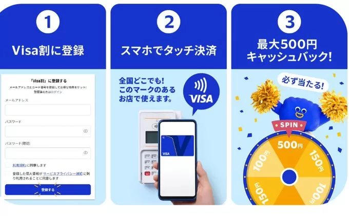 1000円以上のVISAタッチ決済毎にキャッシュバック抽選。
