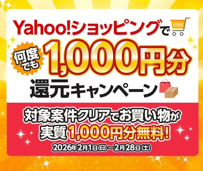 アメフリ経由でYahooショッピングを使いつつ、対象案件を1つでもクリアすると1000円分のポイントが貰えます。簡単な対象案件がいくつかあったので今月Yahooショッピング使うならアメフリが良さそうです。