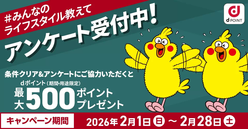 簡単なアンケートに回答して100万ポイント山分け(最大500P)