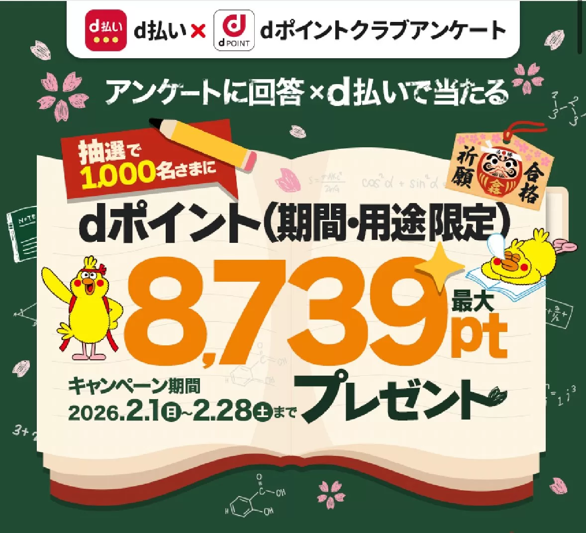 「エントリー」→「アンケートに回答」→「200円以上の払い」で1000名様にdポイントプレゼント。簡単なのでやります~