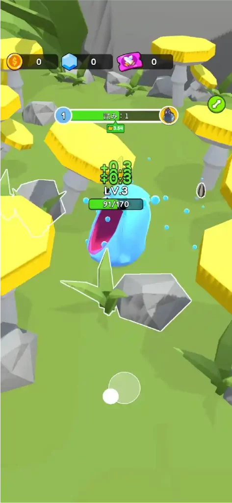 スライムをフリックで操作して、小さいものから順に取り込んでいき大きくしていくゲームです。塊魂(かたまりだましい)世代の筆者にとってはとても楽しいゲームでした。