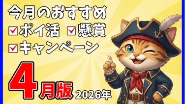 今月のおすすめ【2026年4月】今月おすすめのポイ活・懸賞・キャンペーン 独断と偏見で毎月良さそうな懸賞やキャンペーン情報を一覧化しています。(殴り書きなので、詳細はキャンペーンページ参照)Xでの情報発信の方が早いので、良ければX(@AliceNoMinato)もフォローいただけると幸いです!数が多いので特にアツ... 2026.03.31今月のおすすめ