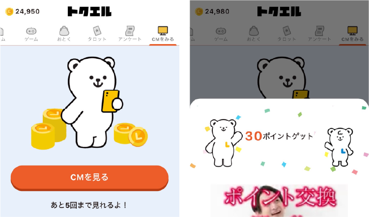 1視聴につき30Pが貰えます。一日の上限は5回まで