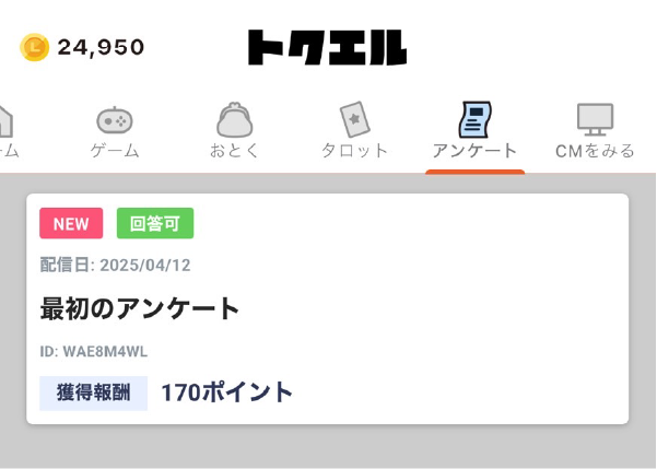 文字通り、アンケートに回答することでポイントが貰えます。初回アンケートは報酬が良いので必ず回答しておきましょう。