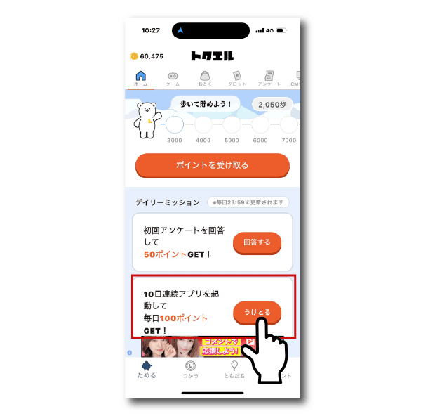 中でも一押しなのが、「10日連続アプリ起動」。