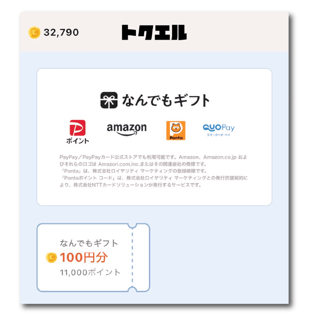 トクエルはなんと100円からポイント交換が可能です!