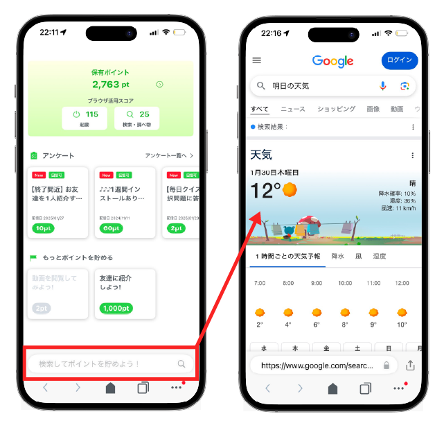 ポイント額は使った量に比例。 慣れれば調べものするときのワンアクションとして良いですが、ちょっとめんどくさい…ですねw