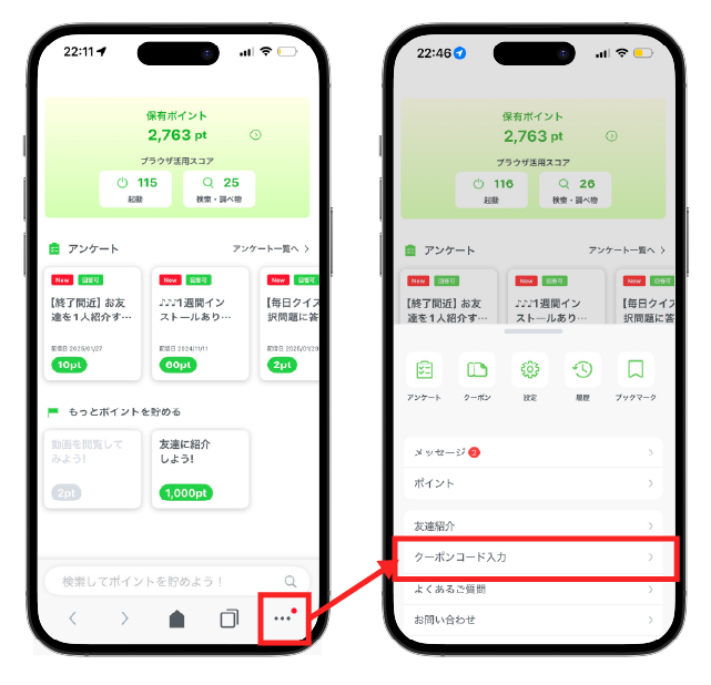 右下の…からクーポンコード入力でここに入力するだけです♪