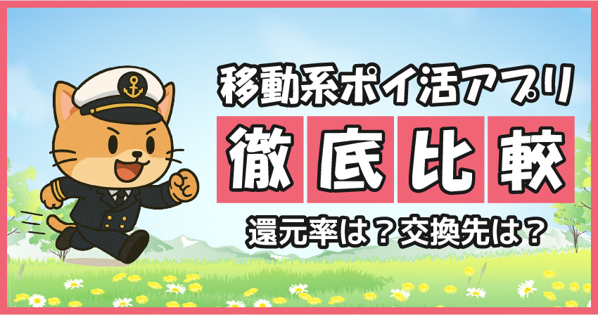 最近、移動系ポイ活アプリが増えてきましたね!今回は、大体のアプリを利用している筆者が、各ポイ活アプリの特徴をまとめてみました。皆さんのアプリ選定の一助になれば幸いです。